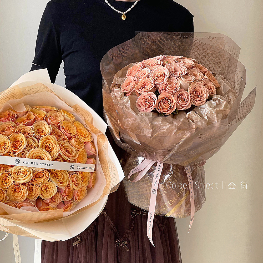 Opp cellophane flower wrapping paper english color cellophane net red flower wrapping paper