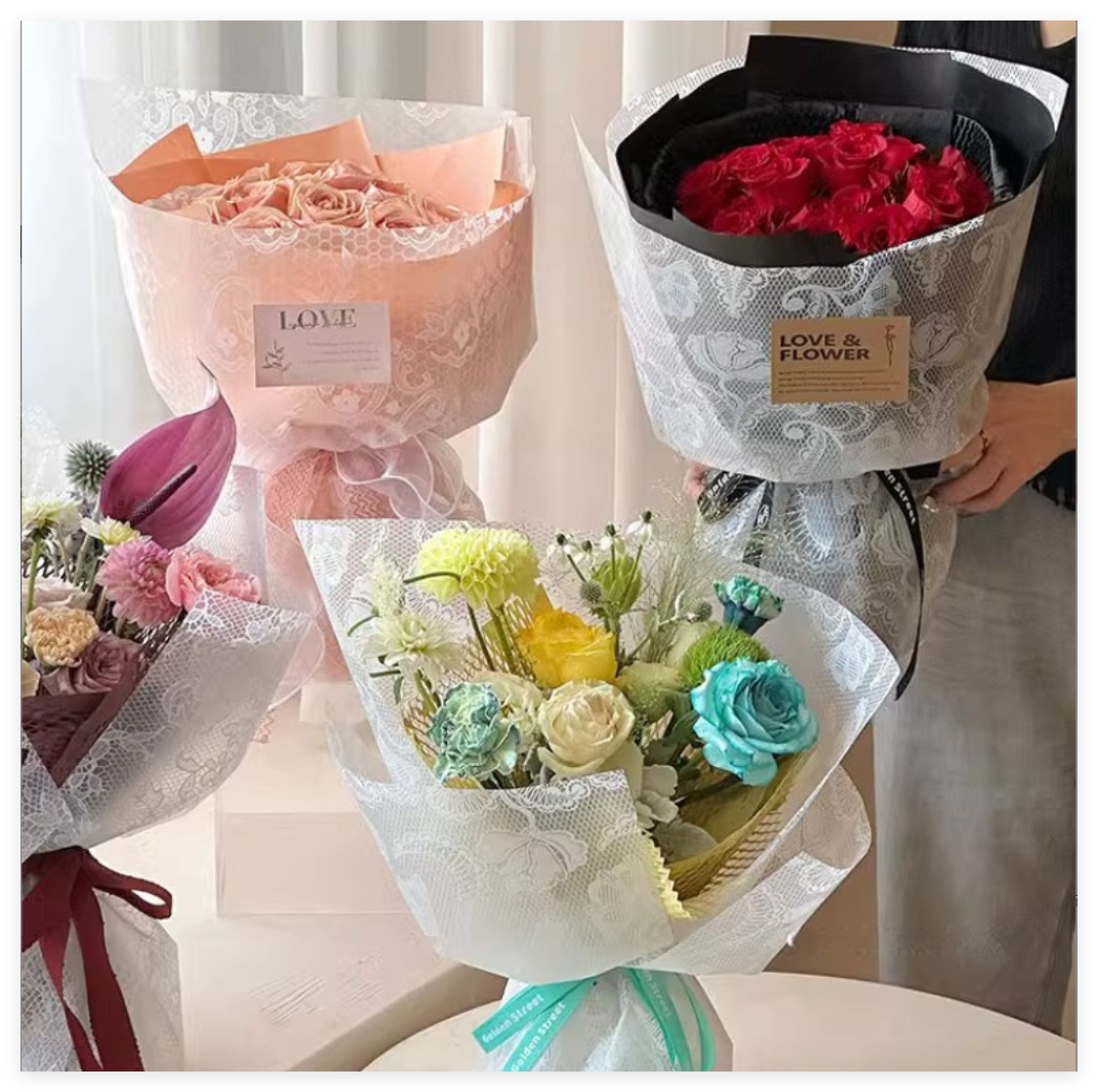 Lace Mengchenosha paper waterproof translucent rose flower bouquet plastic wrapping paper diy floral art