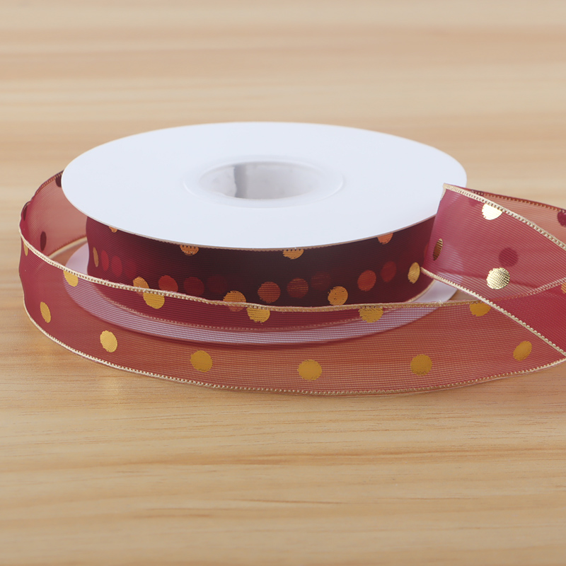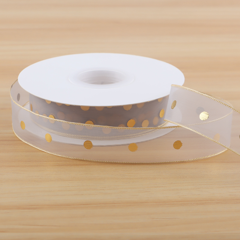 High-grade bronzing polka dots snow gauze belt gift packaging bow flower bouquet gift decoration ribbon belt