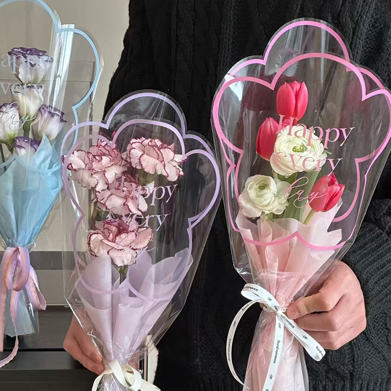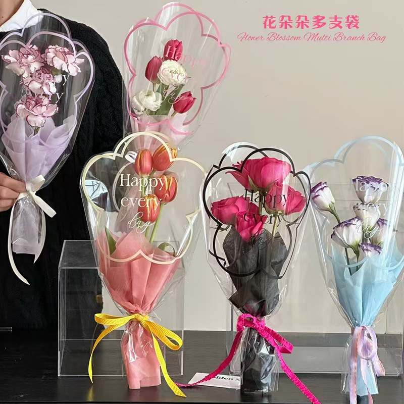 Multi-branch bag valentine bouquet packaging diy material bag transparent opp flower packaging bag
