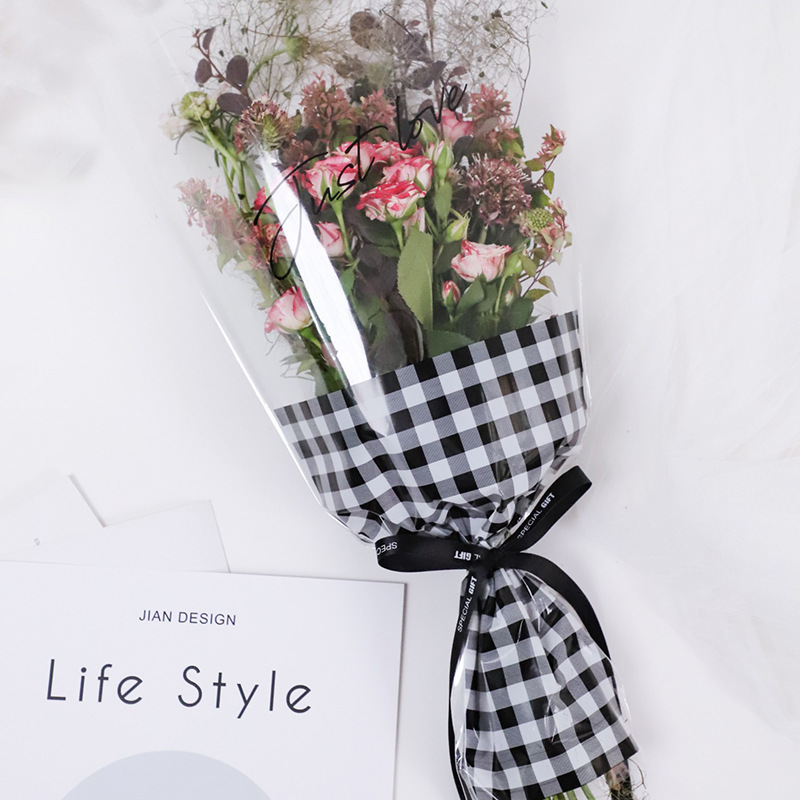 Valentine’s Day multiple roses bouquet package bag transparent mini flower package bag flower field lattice bouquet bag